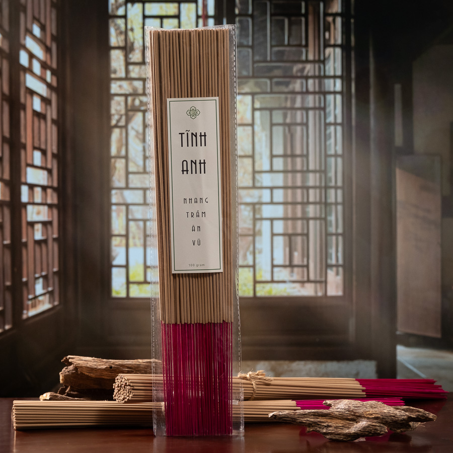Nhờ nguyên liệu từ vùng Huế, nơi trầm hương kết tinh trong điều kiện khí hậu mưa nhiều, lớp dầu giàu và lâu năm hơn, hương thơm của nhang tăm trầm hương Tĩnh Anh mang nét ngọt thanh, sâu lắng, với một chút ấm áp dễ chịu, nhẹ nhàng lan tỏa trong không gian.