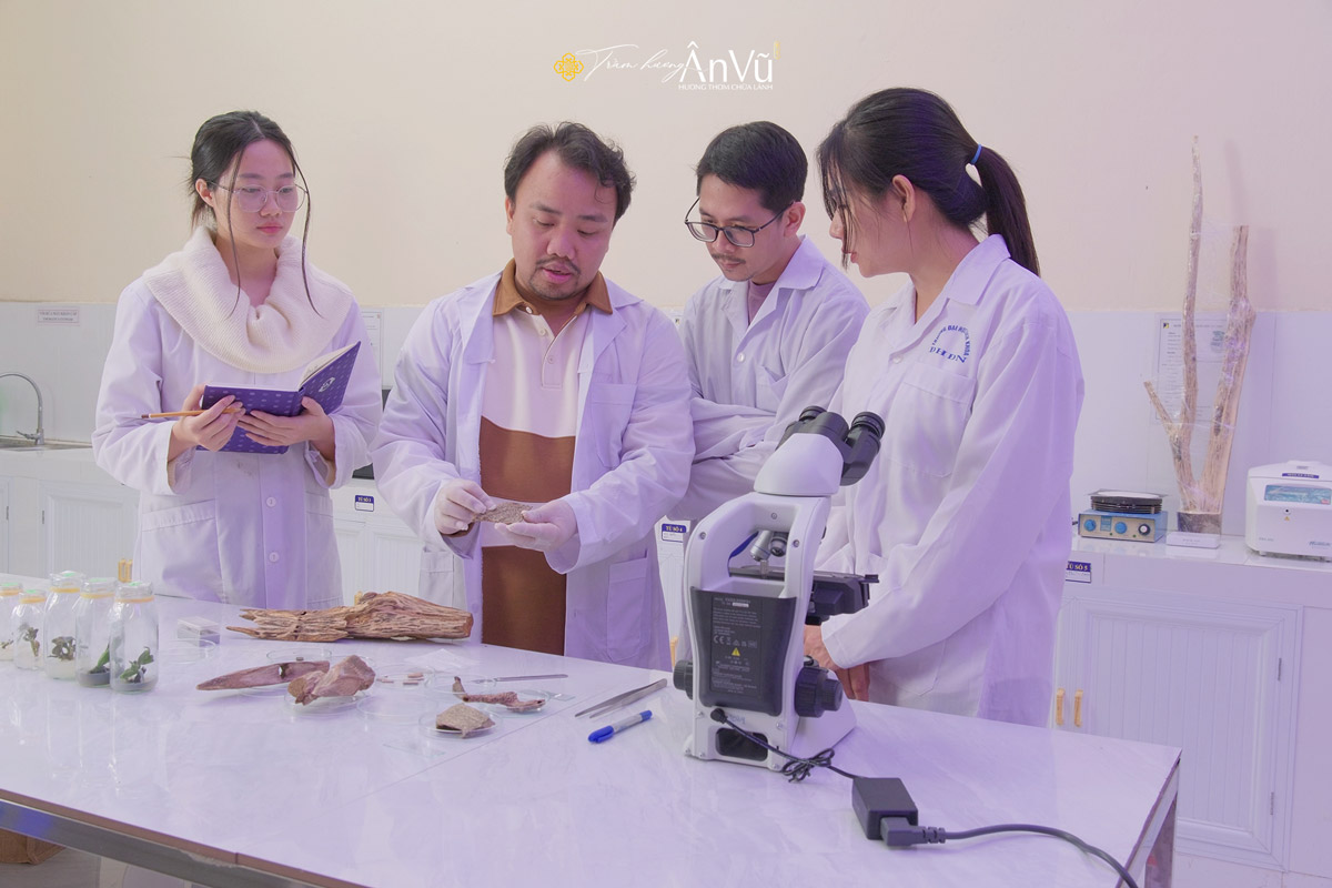 Chú thích ảnh: Đội ngũ nghiên cứu Ân Vũ tại phòng thí nghiệm khoa Công nghệ sinh học - Đại học Bách khoa ĐN