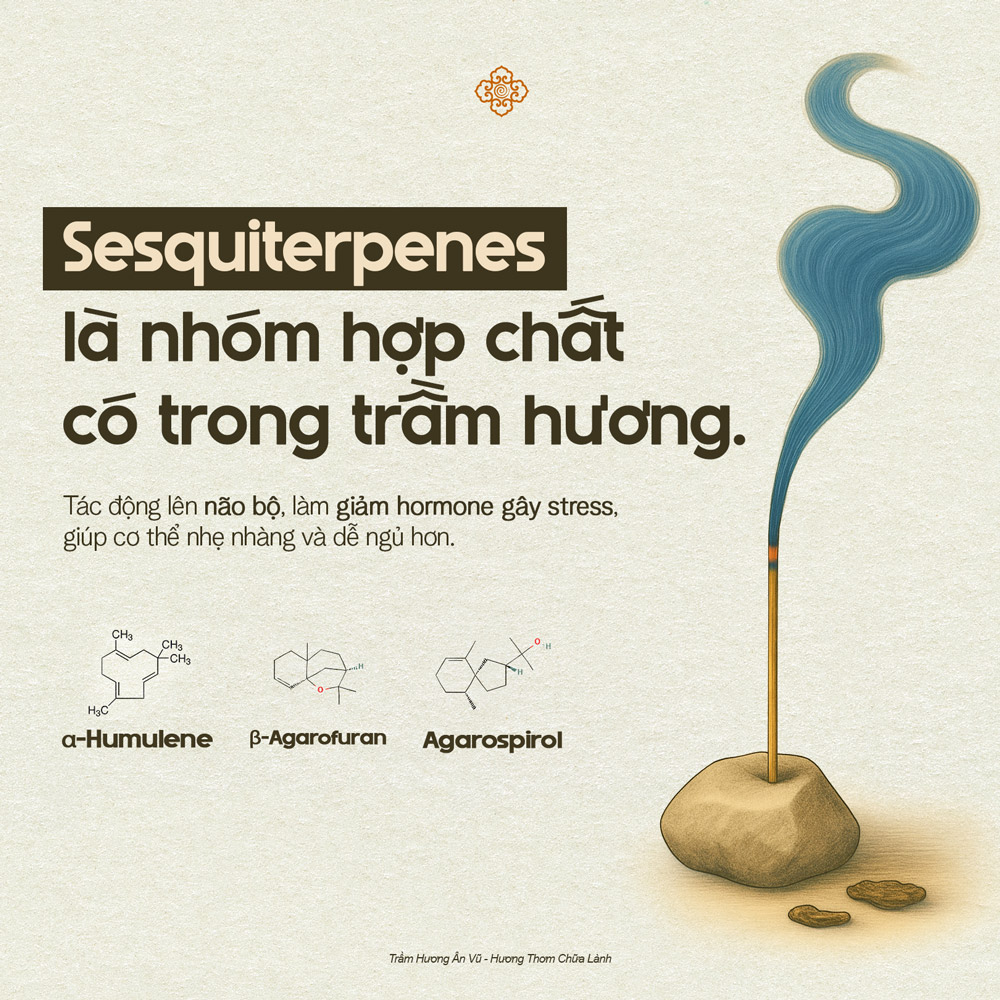 Không chỉ đơn thuần là “một mùi dễ chịu”, trầm hương chứa một tổ hợp các hoạt chất quý giá có khả năng can thiệp vào cơ chế thần kinh điều khiển giấc ngủ – thông qua hô hấp, truyền dẫn thần kinh và điều hòa nội tiết.
