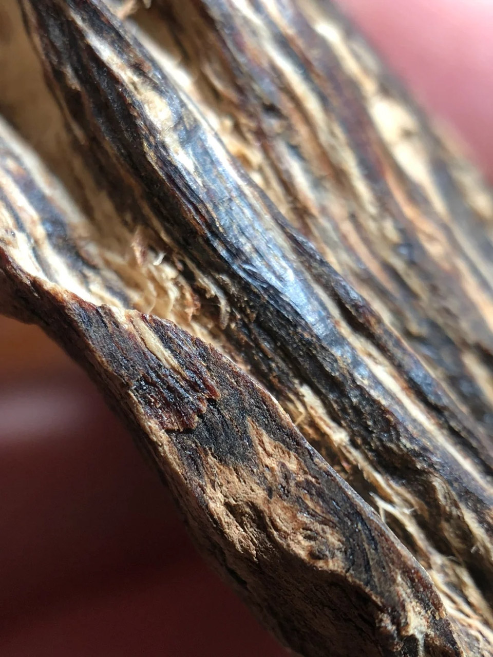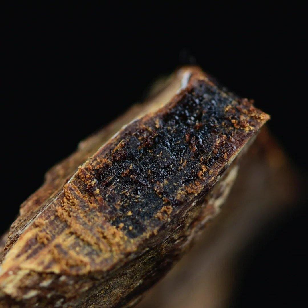 Chú thích ảnh: Cận cảnh thớ trầm hương tự nhiên – nơi tích tụ nhựa thơm giàu Benzylacetone